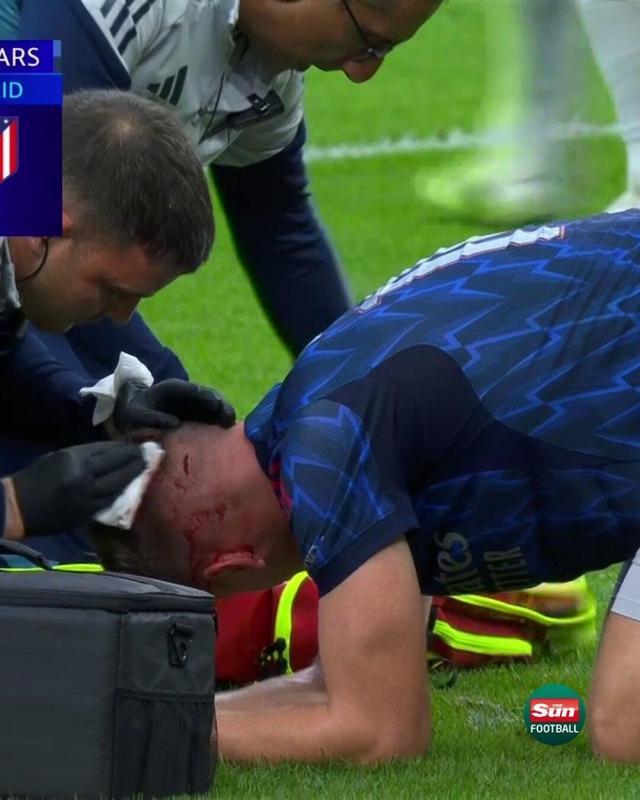 加布里埃爾爭(zhēng)頂時(shí)把約克雷斯頭撞出血,后者纏繃帶后繼續(xù)比賽