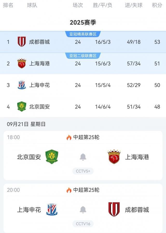 關(guān)鍵一輪!中超前四周日兩兩對(duì)決:申花vs蓉城,國(guó)安vs海港